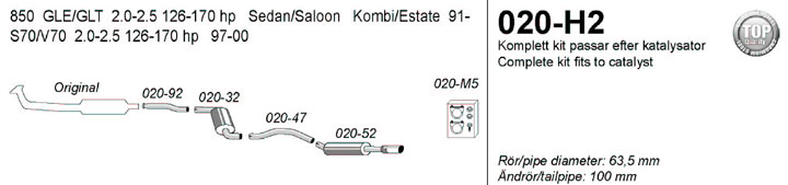 Simons 020-H2Avgassystem Volvo 850 V70 S70