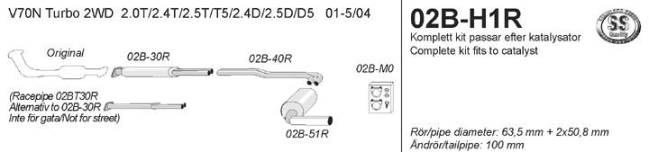 Simons 02B-H2RRostfritt avgassystem Volvo V70N Turbo